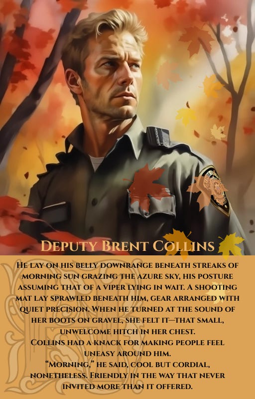He bore more than a passing resemblance to a famous actor, she mused to herself. Dutch-blond hair and square jaw—faint crows feet etched at the corners of the eyes, same brutal handsomeness—but the resemblance ended there. Something in him felt colder. Not cruel. Not hostile. Just… distant. Like the wind coming off the mountains. A man who kept his inner weather to himself.